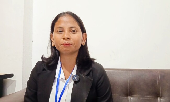 Catherine Evita Ndosaim, salah satu calon karyawan saat mengikuti tahapan seleksi Public Speaking yang digelar Kopdit Swasti Sari, Kamis (18/09/2025), mengungkapkan rasa haru bercampur cemas.
