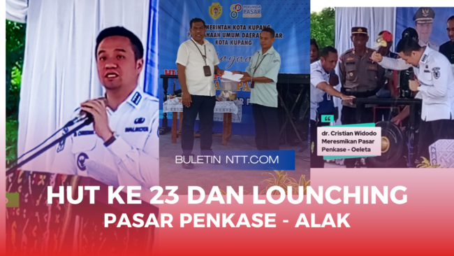 “Genap 23 tahun Perumda Pasar berdiri, dan hari ini kita padukan dengan launching atau peresmian Pasar Penkase–Alak”.