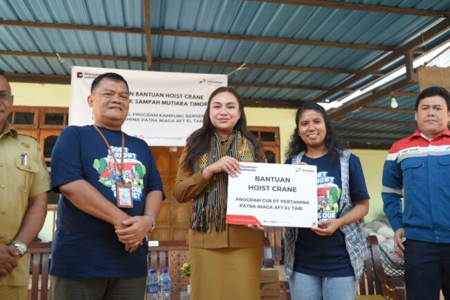 Pada Kamis (9/10/2025), Pertamina Patra Niaga AFT El Tari menyerahkan satu unit Hoist Crane dan menyelenggarakan pelatihan keselamatan dan kesehatan kerja (K3) kepada pengelola Bank Sampah Mutiara Timor (BSMT).